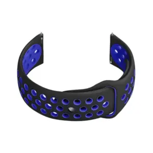 Fekete gumiszíj okosórához, sötétkék belső oldallal. Kényelmes, rugalmas anyaga jól illeszkedik a mindennapi viselethez és sportos használathoz is.