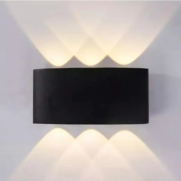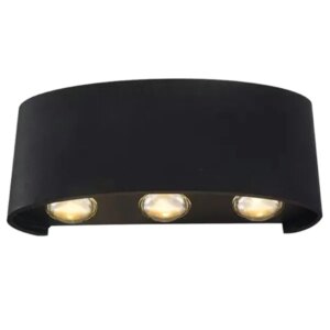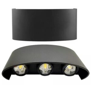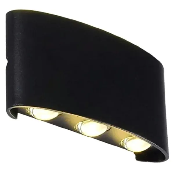 Elegáns, modern fekete LED fali lámpa, amely 6 fénypontra osztva világít fel és le (3+3), látványos fényrajzot adva a falon. Az IP54 védelemnek köszönhetően ideális beltérre és kültérre is: nappaliba, folyosóra, irodába, teraszra vagy homlokzatra.