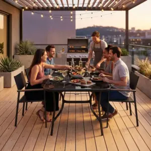 Az asztal stabil szerkezete megbízható támaszt nyújt a mindennapokban, legyen szó reggeli kávéról, grillezésről vagy nyári vacsoráról. A visszafogott, univerzális design különböző terasz- és kerti berendezésekhez is jól passzol.