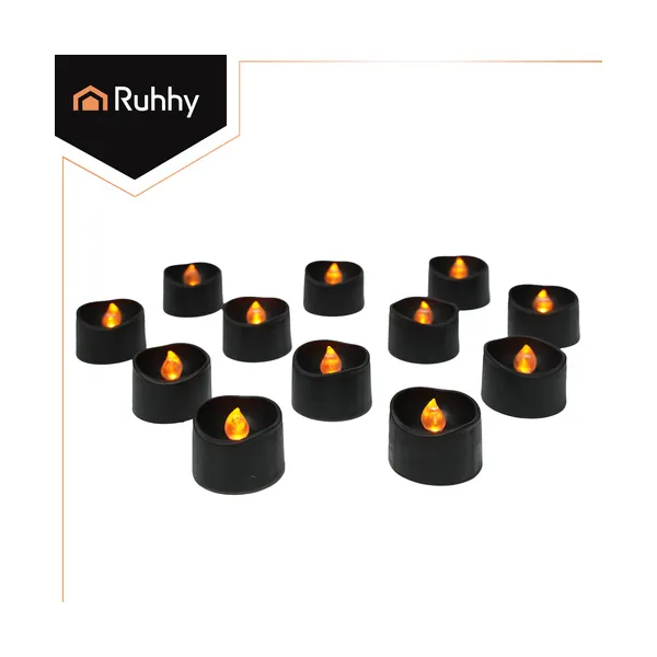 Fekete LED teamécses szett 12 db, 3,6 cm, lánghatás, CR2032 elemmel