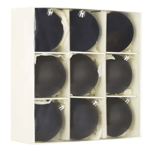 Fekete műanyag karácsonyfadísz gömb szett 9 db, 8 cm, törhetetlen