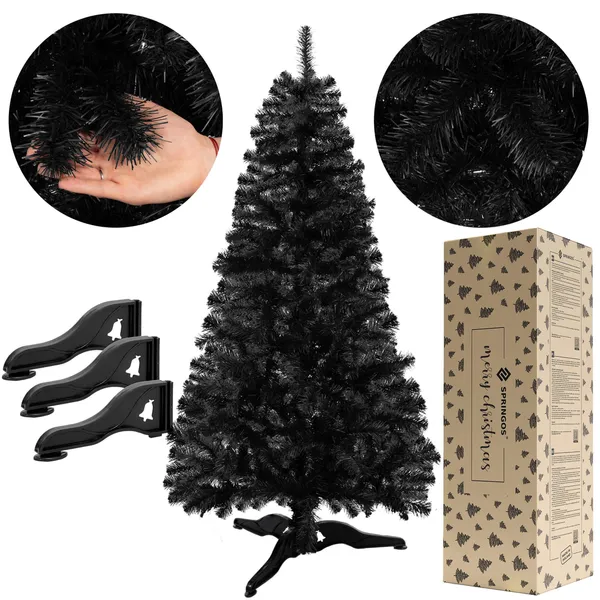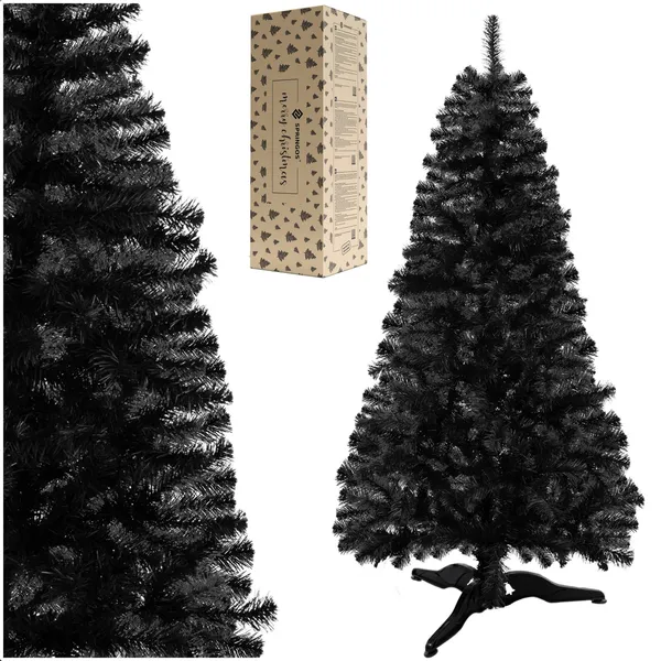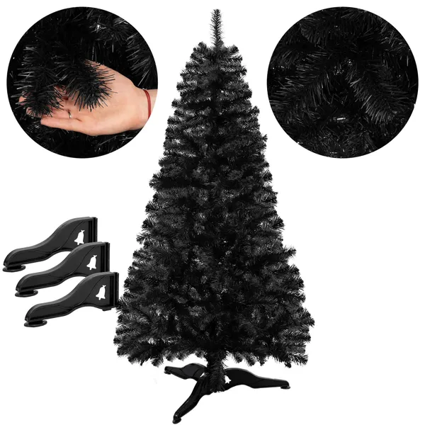 Fekete műfenyő 180 cm, dús ágak, stabil háromlábú talppal