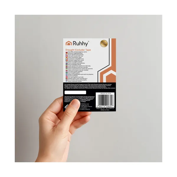 Felhelyezési tipp: tisztítsa meg a felületet, mérje ki és vágja le a szükséges hosszot, húzza le a védőfóliát, majd simítsa a szalagot az ajtó- vagy ablaktokra.
