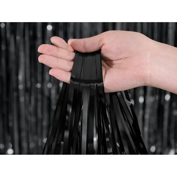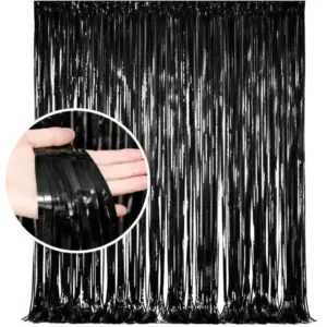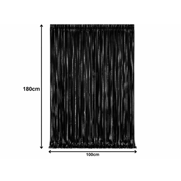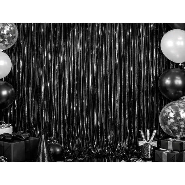 Csillogó fekete fóliafüggöny, amivel pillanatok alatt látványos fotóhátteret és elegáns bejáratot készíthetsz. Az öntapadó felső résznek köszönhetően sima felületre gyorsan rögzíthető, így születésnapokra, esküvőkre és tematikus bulikra is kényelmes választás.