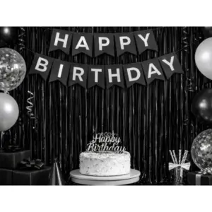A fekete dekorfüggöny egyszerű, mégis látványos megoldás, ha gyorsan szeretnél elegáns hátteret teremteni egy születésnapon, évfordulón, esküvőn vagy tematikus bulin. A csillogó fóliacsíkok szépen visszaverik a fényt, így különösen jól mutatnak fotókon és videókon.