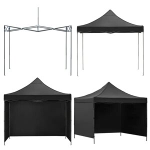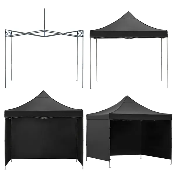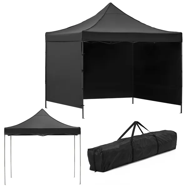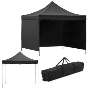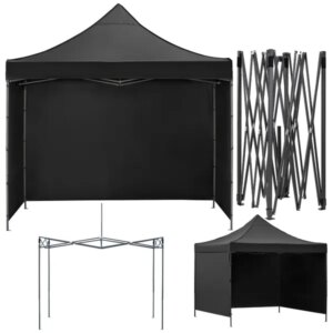 Fekete összecsukható kerti pavilon 3×3 m, acél váz, Oxford 420D