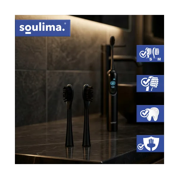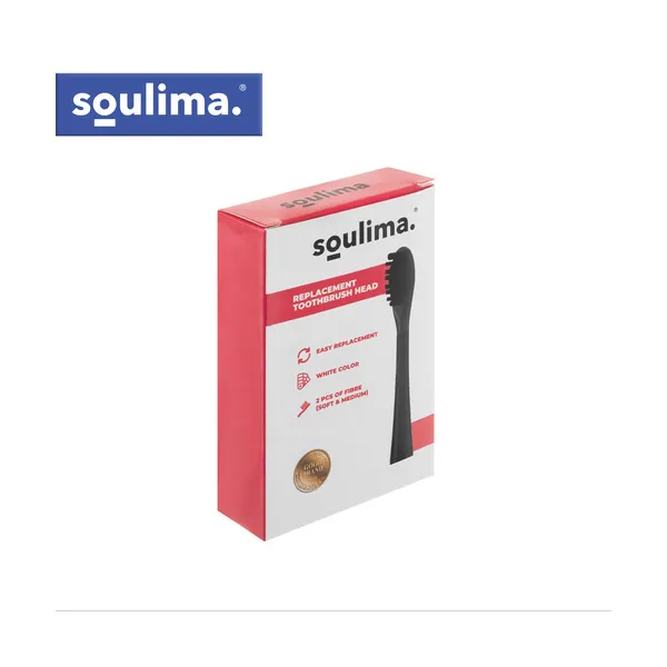 Eredeti pótfejek a Soulima X800 szónikus fogkeféhez, fekete színben. A csomag 2 darab fejet tartalmaz, kétféle sörtéerősséggel: soft és medium, így a mindennapi szájápolást könnyen az egyéni igényekhez igazíthatja.