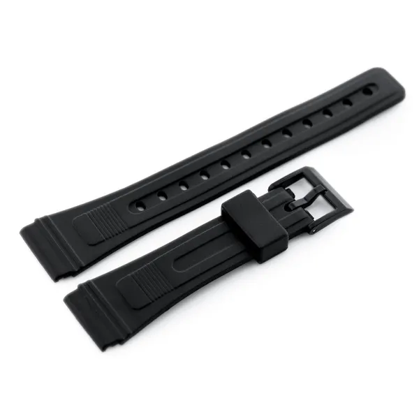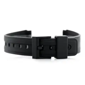 Kényelmes, fekete gumi óraszíj mindennapi viselethez, amely könnyen tisztán tartható és jól alkalmazkodik a csuklóhoz. A 12 állítólyuk és a könnyű műanyag csat praktikus, biztos illeszkedést nyújt.