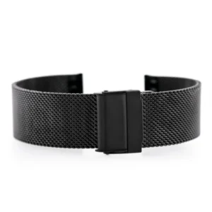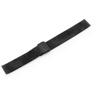 Prémium fekete PVD acél mesh óraszíj 22 mm-es fülekhez, amely légáteresztő kialakításának köszönhetően kényelmes viselet a mindennapokban. Gyorsan méretre igazítható csatja akár 4,5 cm-es tartományban állítható, így pontosan követi a csuklód vonalát.