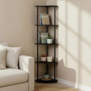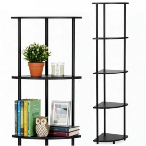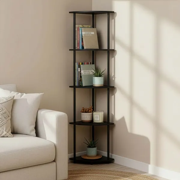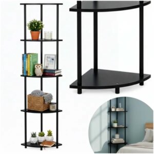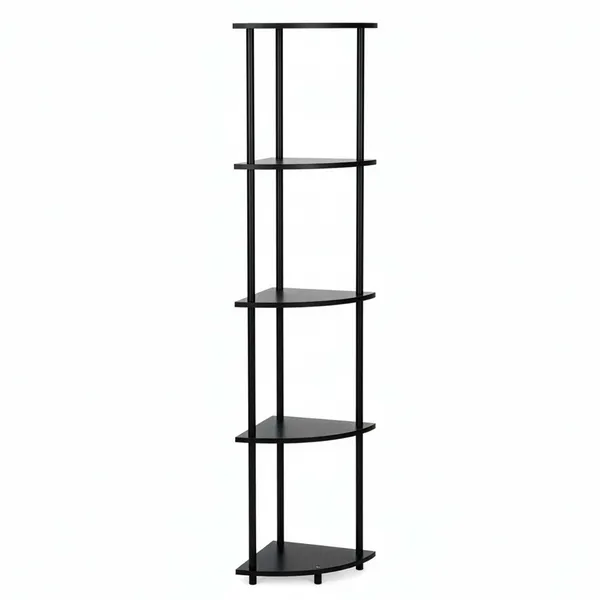 Helytakarékos, 5 szintes sarokpolc, amellyel a kis terek is jól kihasználhatók. A stabil fém váz és az MDF polclapok megbízható tárolóhelyet adnak, a fekete dizájn pedig könnyen illeszkedik modern otthonokba.
