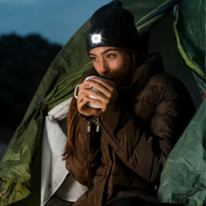 A kétrétegű, puha fekete sapka beépített, USB-n tölthető LED lámpával gondoskodik róla, hogy a sötétben is jól látható maradj. Három választható fény módja mellett az anyag hatékonyan óvja a fejet a hidegtől.