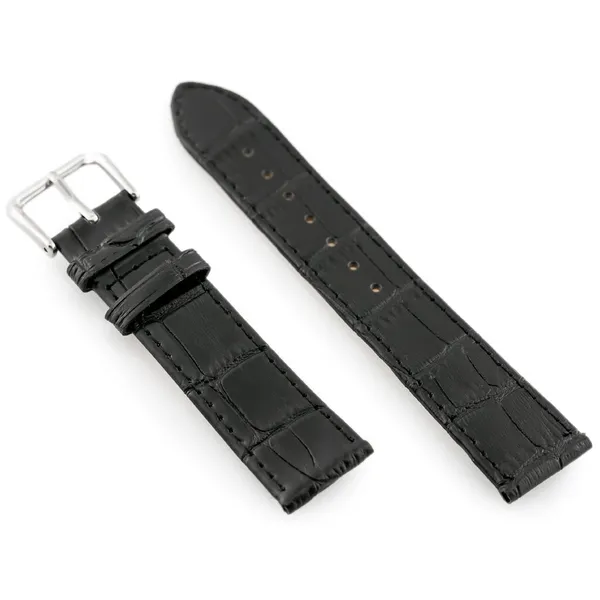 Természetes bőrből készült fekete óraszíj fekete varrással és ezüstszínű fém csattal. Klasszikus megjelenése kényelmes viselettel párosul, így ideális választás a mindennapi használathoz és elegánsabb alkalmakra is.