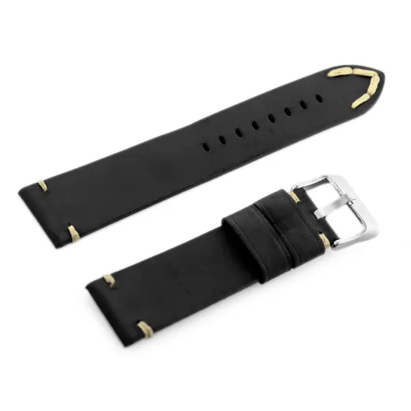 Fekete természetes bőr óraszíj bézs varrással 20 mm