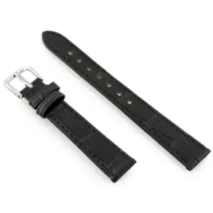 Fekete természetes bőr óraszíj ezüst csattal 14 mm