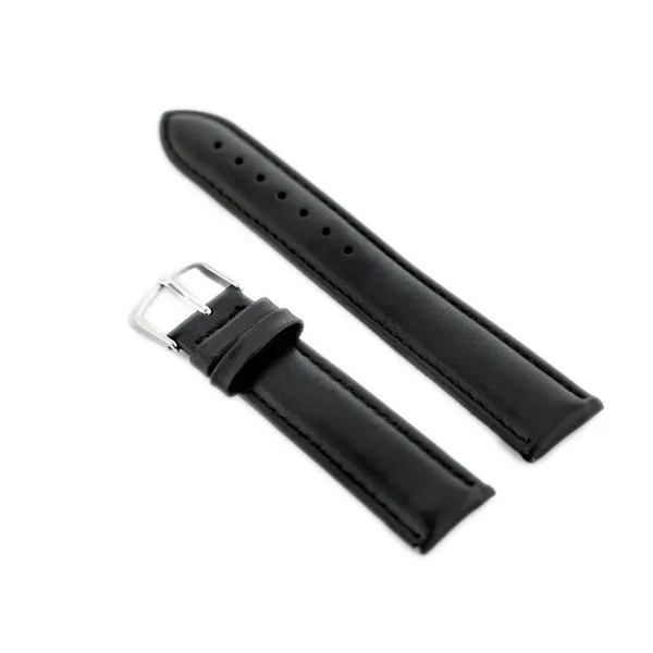 Természetes bőrből készült fekete óraszíj fekete varrással és ezüstszínű fémcsattal. Klasszikus megjelenése miatt elegáns és hétköznapi órákhoz is kiváló választás, miközben kényelmes viseletet biztosít a mindennapokban.