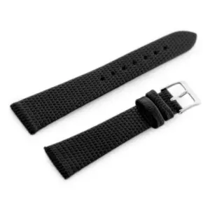 Természetes bőrből készült fekete óraszíj, elegáns ezüstszínű fém csattal. Kényelmes választás a mindennapi viselethez, ha klasszikus megjelenésű, 20 mm-es csatlakozású szíjat keres órájához.