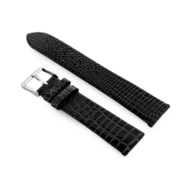 Természetes bőrből készült óraszíj elegáns fekete színben, ezüstszínű fémcsattal. Kényelmes viseletet és klasszikus megjelenést biztosít a mindennapokban, miközben egyszerűen illeszthető a 22 mm-es tokfüles órákhoz.
