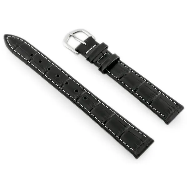 Fekete természetes bőr óraszíj fehér varrással 14 mm
