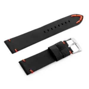 Természetes bőrből készült óraszíj fekete színben, elegáns piros varrással. A kényelmes viseletről és a biztonságos rögzítésről ezüstszínű fém csat gondoskodik. Klasszikus és sportos órákhoz is remek választás, ha tartós, igényes megjelenésű szíjat keres.