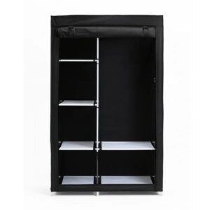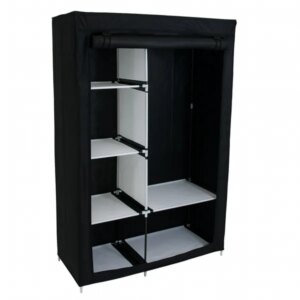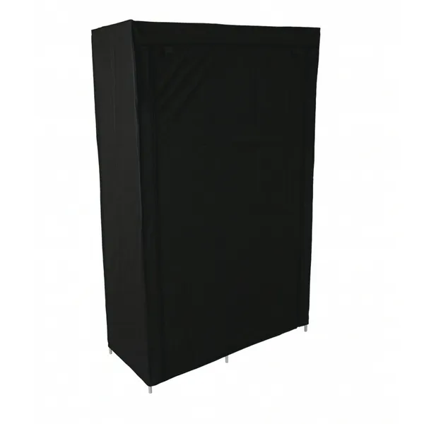 A fekete textil ruhásszekrény könnyű, praktikus és esztétikus megoldás a ruhák rendszerezett tárolására otthon, irodában vagy ifjúsági szobában. A fémcsövekre épülő váz stabil tartást ad, a strapabíró textil huzat pedig megóvja a ruhákat a portól – alul is, a teljes anyagborításnak köszönhetően.