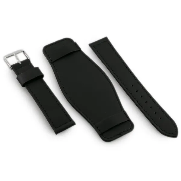 Természetes bőrből készült, fekete színű óraszíj alátéttel és fekete varrással. Az ezüstszínű fém csat elegáns megjelenést ad, míg a párnázott kialakítás kényelmes viseletet biztosít a mindennapokban.