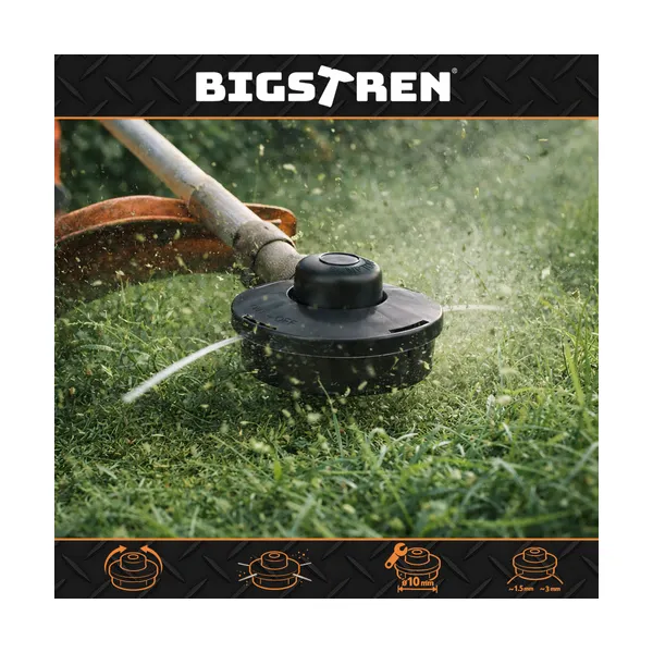A balmenetes M10 (10 mm) rögzítésnek köszönhetően széles körben kompatibilis számos piacon elérhető benzines fűkaszával és szegélynyíróval. A fej 1,5–3 mm átmérőjű damilt fogad, így a terheléshez és a növényzethez igazítható.