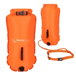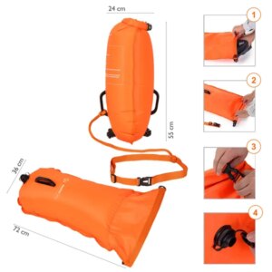 A felfújható, 28 literes biztonsági úszóbója nélkülözhetetlen társad minden vízi kalandhoz. A nagy méretű vízhatlan száraz zsebben biztonságban tarthatod kulcsaidat, telefonodat vagy energiapakkodat, miközben a bója élénk színe és beépített sípja gondoskodik róla, hogy mindig jól látható és hallható maradj.