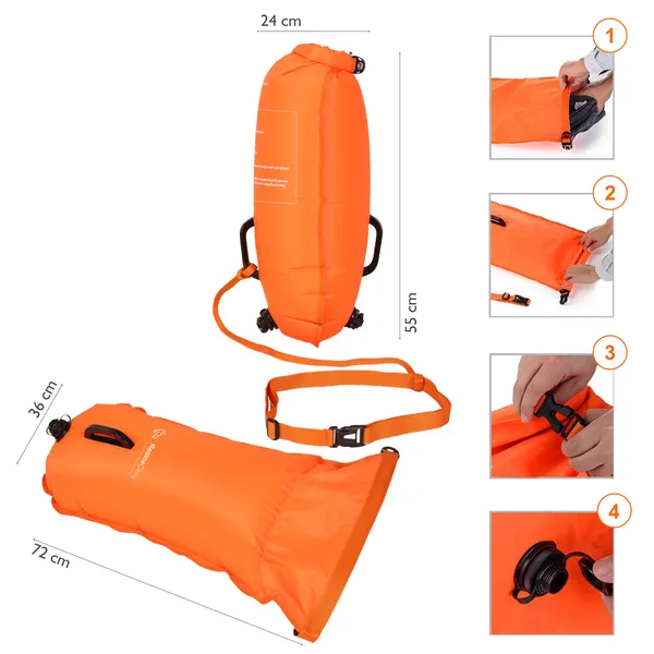 Felfújható biztonsági bója 28 l száraz zsebbel, kajak/SUP úszáshoz