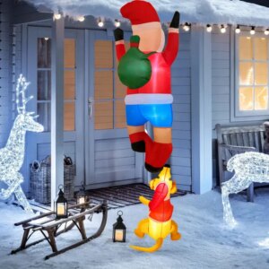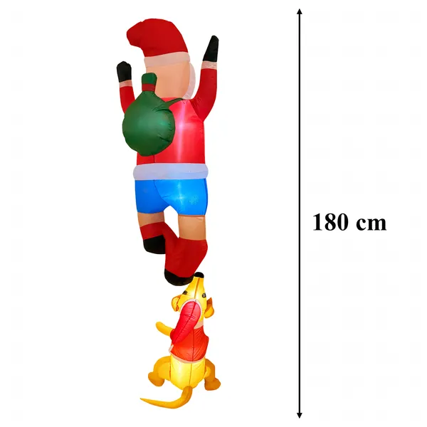 Készülj fel a karácsonyra ezzel az 1,8 méter magas, felfújható Mikulással és vidám rénszarvasával, amely beépített LED világításának köszönhetően nappal és sötétedés után is azonnal megragadja a tekintetet.