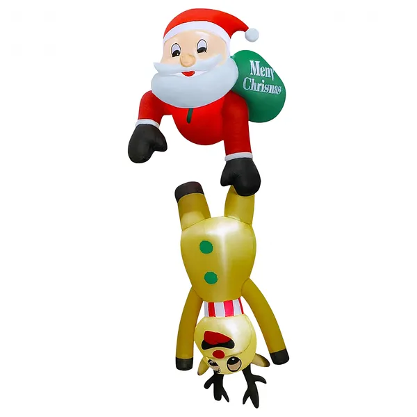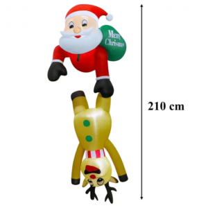 Készülj fel az ünnepekre egy igazán látványos dekorációval! A 2,1 méter magas, LED-es megvilágítással ellátott, felfújható Mikulás, aki vidáman csüng rénszarvasán, pillanatok alatt karácsonyi hangulatot teremt a kertben vagy a nappaliban. A strapabíró poliészter anyag és a beépített ventilátor gondoskodnak róla, hogy a figurát évekig használhasd, a fények pedig sötétedés után is elbűvölővé teszik a kompozíciót.