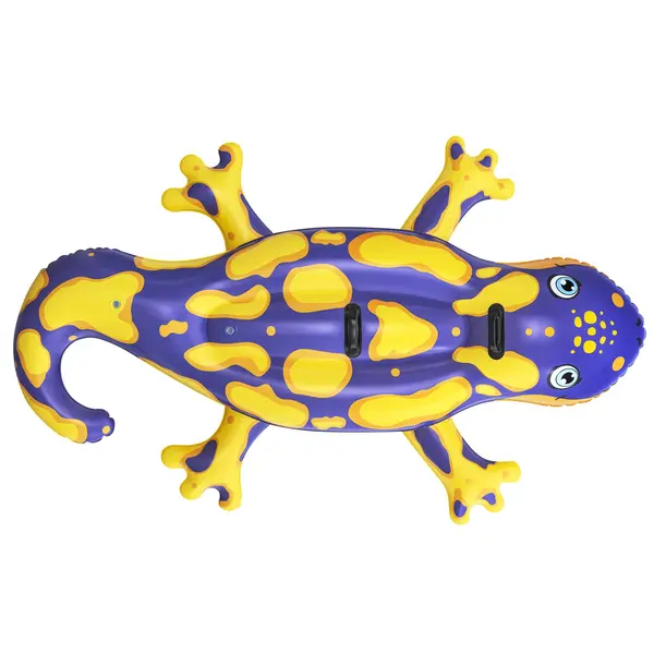 Két gyereknek is kényelmes, szalamandra formájú felfújható matrac, amelyen a fogantyúk biztonságosabb kapaszkodást adnak a vízi játékokhoz. Strapabíró anyagból készül, könnyű, kis helyen elfér, és gyorsan felfújható, így medencéhez, tópartra vagy strandra is ideális.