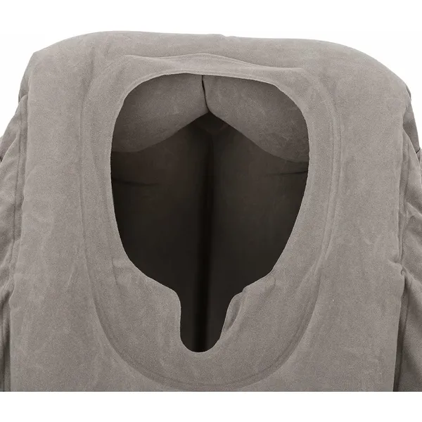Felfújható szív alakú utazópárna, szürke, PVC velúr, 50×32×30 cm