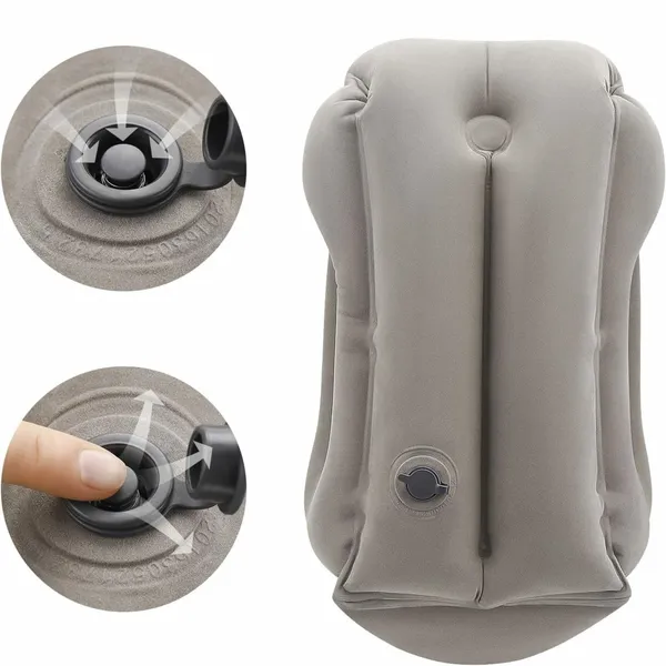 Felfújható szürke utazópárna, ergonomikus velúr PVC, 35×30×55 cm