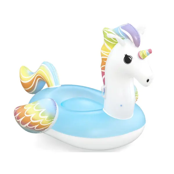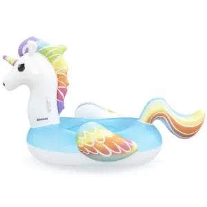 Ez a szivárványos, szárnyas unikornis formájú felfújható úszómatrac látványos és kényelmes választás a nyári pihenéshez. A 224 × 164 cm-es méret bőséges helyet ad a relaxáláshoz a medencében, tóparton vagy a tengerben, miközben a stabil kialakítás és az élénk színek igazán hangulatossá teszik a vízen töltött időt.