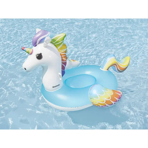 Élvezd a nyári lazítást egy látványos, unikornis formájú úszómatracon, amely kényelmesen megtart a vízen és a két kapaszkodónak köszönhetően stabilabban használható. Könnyen szállítható, gyorsan felfújható, így medencéhez és vízparti pihenéshez is praktikus választás.
