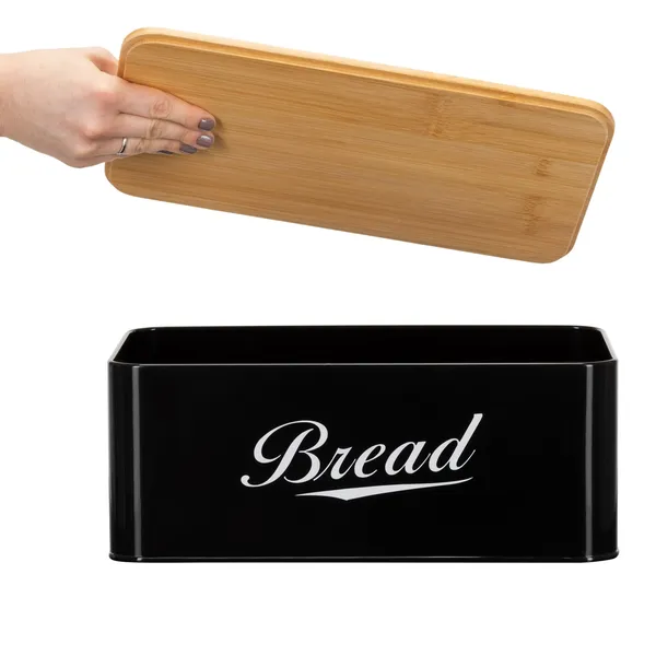 Fém kenyértartó bambusz fedéllel, fekete-fehér, 33×18×14 cm