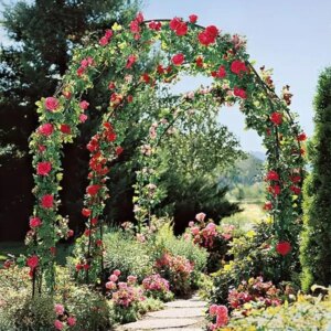 Fém kerti pergola ív – futónövény támasz rózsához és zöldséghez