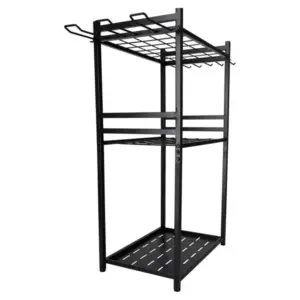 Rendezd egy helyre a hosszú nyelű kerti eszközöket: a stabil fém állvány átlátható tárolást ad, így gyorsabban dolgozhatsz és kevesebb a rendetlenség. Kertben, garázsban vagy műhelyben is jól használható, az oldalsó akasztók pedig extra helyet adnak a gyakran kéznél tartott eszközöknek.