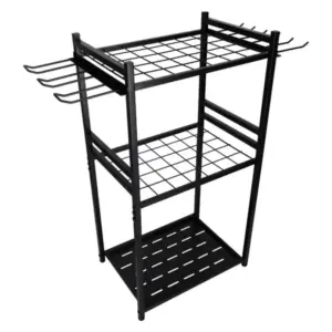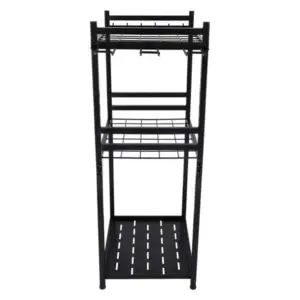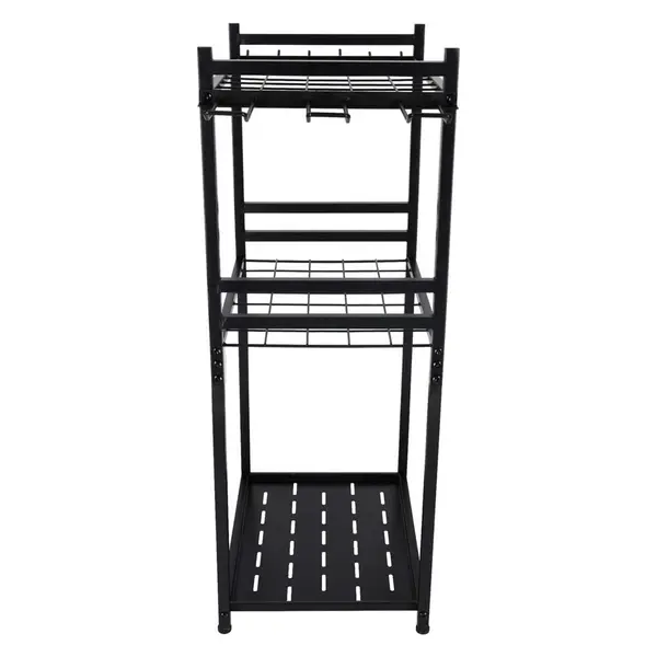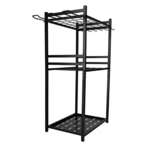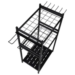 A stabil, fém váz több szinten segít elkülöníteni a szerszámokat, a két oldalsó akasztó pedig extra helyet ad a könnyebben felakasztható eszközöknek. Ideális választás kertbe, teraszra, garázsba, pincébe, kerti tárolóba vagy műhelybe, ahol fontos a tiszta, rendezett környezet.
