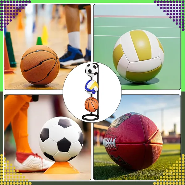 Praktikus és strapabíró labdatartó állvány, amely kényelmes tárolást és gyors hozzáférést biztosít a sportlabdákhoz. Masszív fém konstrukciója stabilan tartja a labdákat, így rendet teremt az edzőtérben vagy otthon.