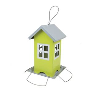 Fém madáretető házikó, 20,5×19,5 cm, zöld-szürke