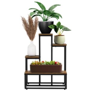 Négyszintes, fém-fa növénytartóval stílusosan rendezed el kedvenceidet, miközben masszív szerkezete akár 40 kg-ot is elbír. Kompakt méreteinek köszönhetően kevés helyet foglal, mégis látványos fókuszpontot teremt a lakás bármely pontján.