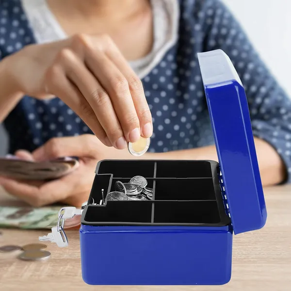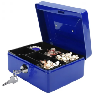A kulccsal zárható fém pénzkazetta biztonságos és rendezett megoldás készpénz, érmék, bankjegyek, fontos iratok és kisebb értéktárgyak tárolására. Strapabíró kialakításának köszönhetően ideális otthonra, irodába, üzletbe vagy rendezvények pénzkezeléséhez is.