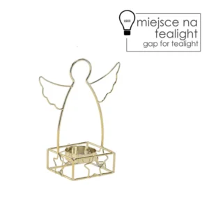 Az aranyszínű, angyal alakú teamécses tartó meghitt, meleg fénybe borítja a szobát, miközben strapabíró fém anyaga hosszú távú díszítőelemmé teszi. Standard mécseshez illeszkedik, tökéletes az ünnepi asztalra vagy kedves ajándéknak.