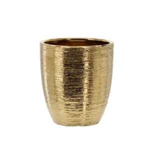 Ez a ragyogó arany kerámia kaspó elegáns megjelenést kölcsönöz bármely helyiségnek. Vízálló belseje és csúszásgátló talpa révén gondtalanul élvezheted szobanövényeid szépségét.