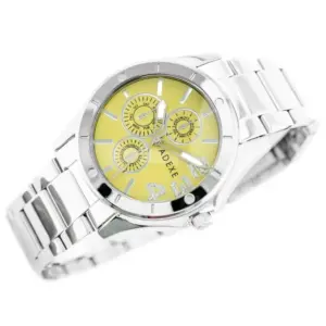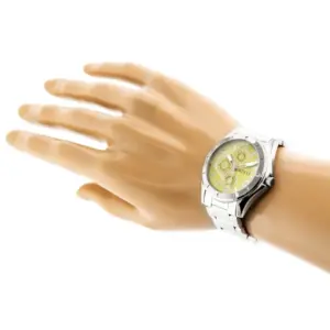 A modell kerek tokot, arany színű számlapot és ezüstszínű fém szíjat kapott, így jól illik üzleti és hétköznapi viselethez is. A kis segédszámlapok díszítőelemek, nem aktívak.