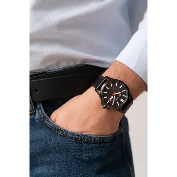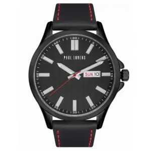 A Paul Lorens PL8071A3-1A3 férfi karóra kiváló választás azoknak, akik az elegáns megjelenést és a letisztult stílust keresik egyetlen modellben. A megbízható japán кварc szerkezet pontos időmérést biztosít, míg a dátumkijelző praktikus használatot nyújt a mindennapokban. A fém tok tartós, karcálló IPS/IPG bevonatot kapott, a fekete számlap pedig jól olvasható és modern összhatást kelt. A fekete, piros varrással díszített bőrszíj kényelmes viseletet és kifinomult megjelenést ad.
