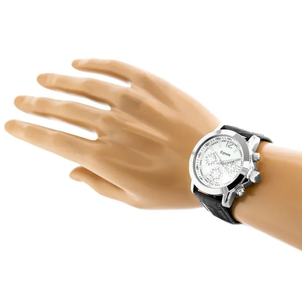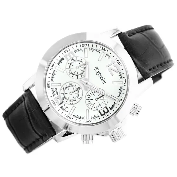 Az Extreim férfi karóra letisztult, elegáns megjelenést kínál mindennapi viseletre és alkalmi öltözékhez egyaránt. A fehér számlap, a fekete bőrszíj és az ezüstszínű tok klasszikus összhatást ad, amely könnyen kombinálható különböző stílusokkal.