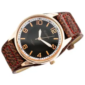 A modell japán Miyota кварc szerkezettel készül, amely pontos időmérést biztosít. A kerek tok, a fekete számlap és a barna textilszíj piros varrással karakteres, férfias megjelenést ad az órának.