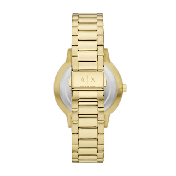 Az Armani Exchange AX7144 férfi karóra elegáns választás azoknak, akik a klasszikus megjelenést modern stílussal szeretnék ötvözni. Az aranyszínű számlap és a harmonikusan illeszkedő aranyszínű rozsdamentes acél szíj kifinomult, egységes összhatást teremt, miközben az ezüstszínű mutatók és indexek jól leolvashatóvá teszik az időt.